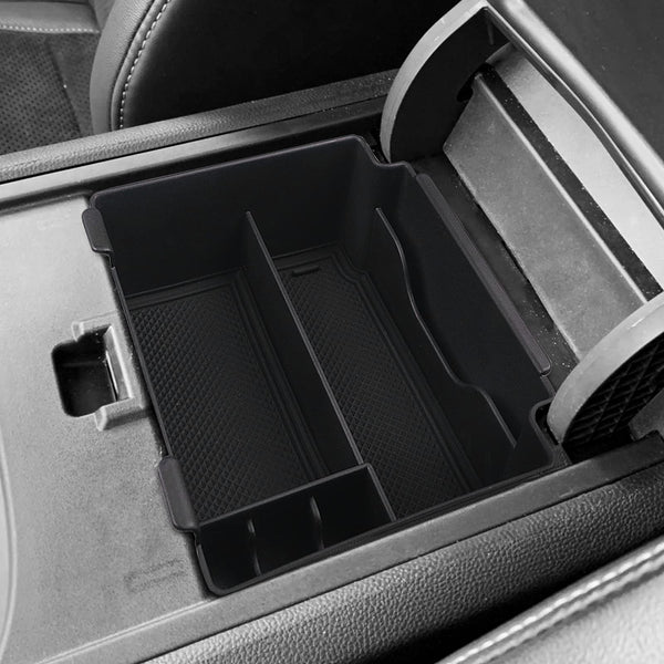 【Easy to Install】 The console organizer Our tray comes with textured rubber mats to keep your items from sliding and rattling in the console. It's easy to install, with no need to drill or modify your console. Just drop it in and go!