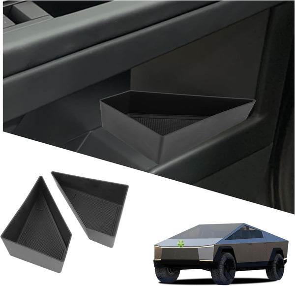 【PREMIUM MATERIAL】The 2024 Cybertruck Door Side Storage Box durable ABS MATERIAL, Made of high quality black ABS plastic, durable rubber, lined with non-slip PVC pads to make items to lay stable, to avoid the stuff noice impacting your Tesla Cybertruck 2024 accessories